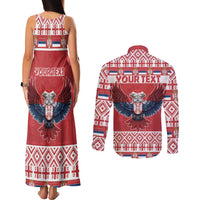 Personalized Serbia Christmas Couples Matching Tank Maxi Dress and Long Sleeve Button Shirt Double-Headed Eagle - Red Version