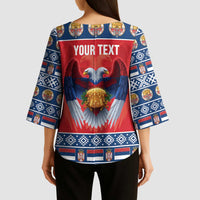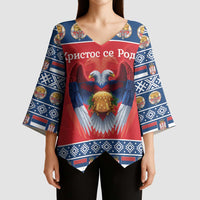 Add a chic touch to your wardrobe with the Personalized Serbia Christmas Kimono Sleeve Blouse Eagle with Cesnica Christmas Bread from Wonder Print Shop. Designed for versatility, this V-neck blouse features flowing kimono-style sleeves and a relaxed fit — perfect for both casual and dressy occasions. Crafted with premium polyester fabric, it offers a soft, lightweight feel for all-day comfort.
