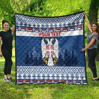 Personalized Serbia Christmas Quilt Coat Of Arms - Blue Version