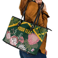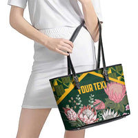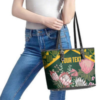 Personalized South Africa King Protea Leather Tote Bag With Kente Patterns