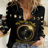Personalized Total Solar Eclipse 2024 Women Casual Shirt My Birthday Present From The Universe