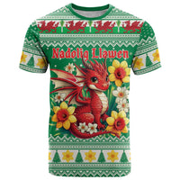 Personalized Wales Christmas T Shirt Cute Red Welsh Dragon and Daffodils LT19
