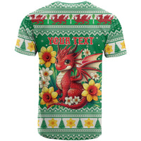 Personalized Wales Christmas T Shirt Cute Red Welsh Dragon and Daffodils