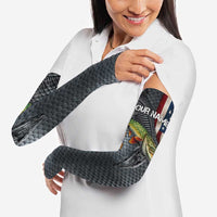 Pike Fishing Arm Sleeves with American Flag and Realistic Fish Scale Texture Design