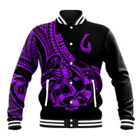 Polynesia Baseball Jacket Fish Hook Tattoo Go Fishing Polynesian Pattern Purple