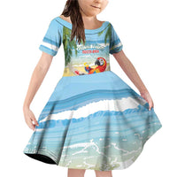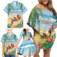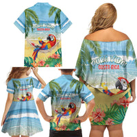 Pura Vida Costa Rica Family Matching Off Shoulder Short Dress and Hawaiian Shirt Chilling Scarlet Macaw Tropical Vibes LT14