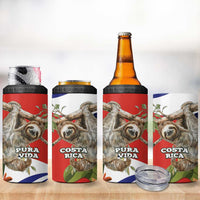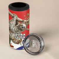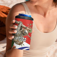 Pura Vida Costa Rica Sloth 4 in 1 Can Cooler Tumbler Tropical Flowers Flag Color