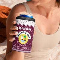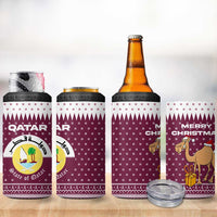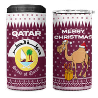 Qatar Christmas 4 in 1 Can Cooler Tumbler with Maroon-White Design, National Emblem, and Camel Motif
