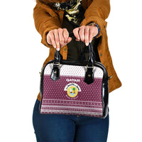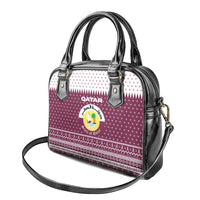 Qatar Christmas Shoulder Handbag with Maroon-White Design, National Emblem, and Camel Motif