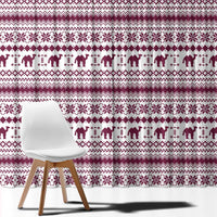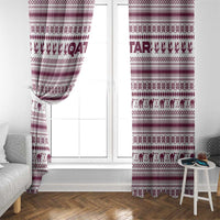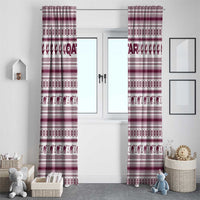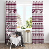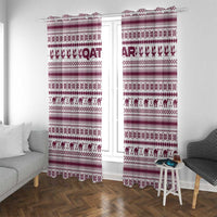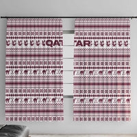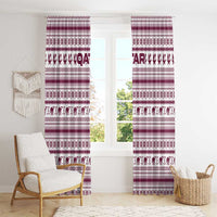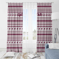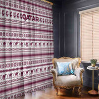 Qatar Christmas Window Curtain with Maroon-White Pattern, National Emblem, and Camel Motif