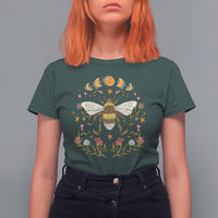 Retro Celestial Mystical Moon Phases Bumble Bee Botanical T-shirt for Women, Bee Gifts for Insect Lover, Bug Lover, Spiritual T Shirt For Women TS02