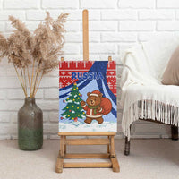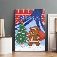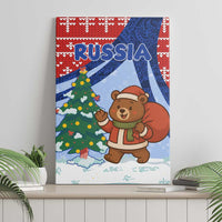 Russia Christmas Canvas Wall Art with Santa Bear Gift Box Christmas Tree and Red Snowflake