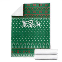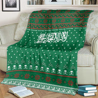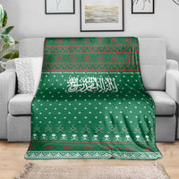 Saudi Arabia Christmas Blanket with Green Pattern, Traditional Script Motif, and Camel Caravan Silhouette