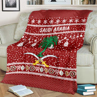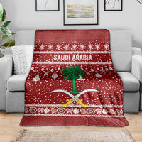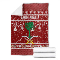 Saudi Arabia Christmas Blanket with Red Festive Pattern, National Emblem with Palm and Swords, and Map Motif TS04