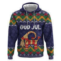 Scandinavian Yule Goat Christmas Zip Hoodie with Scandinavian Folk Pattern Style