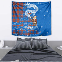 Scotland Christmas Tapestry with Santa Playing Bagpipes and Blue Red Tartan Music Notes