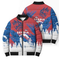 Grab your Serbia Christmas Bomber Puffer Jacket with Wolf Howling Moon Serbian Flag and Red Blue White Winter Forest Pattern Design by Wonder Print Shop today and experience comfort, style, and versatility in one sleek jacket.