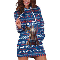 Serbia Christmas Hoodie Dress with Traditional Santa Eagle Serbian Coat of Arms and Blue Red White Folk Pattern Design