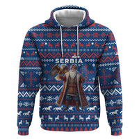 Serbia Christmas Hoodie with Traditional Santa Eagle Serbian Coat of Arms and Blue Red White Folk Pattern Design