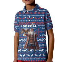 Serbia Christmas Kid Polo Shirt with Traditional Santa Eagle Serbian Coat of Arms and Blue Red White Folk Pattern Design TS04