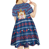 Serbia Christmas Kid Short Sleeve Dress with Traditional Santa Eagle Serbian Coat of Arms and Blue Red White Folk Pattern Design TS04