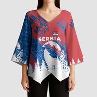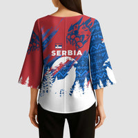 Add a chic touch to your wardrobe with the Serbia Christmas Kimono Sleeve Blouse with Wolf Howling Moon Serbian Flag and Red Blue White Winter Forest Pattern Design from Wonder Print Shop. Designed for versatility, this V-neck blouse features flowing kimono-style sleeves and a relaxed fit — perfect for both casual and dressy occasions. Crafted with premium polyester fabric, it offers a soft, lightweight feel for all-day comfort.
