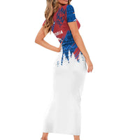 Serbia Christmas Short Sleeve Bodycon Dress with Wolf Howling Moon Serbian Flag and Red Blue White Winter Forest Pattern Design
