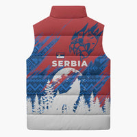 Get your Serbia Christmas Sleeveless Puffer Jacket with Wolf Howling Moon Serbian Flag and Red Blue White Winter Forest Pattern Design by Wonder Print Shop today and experience warmth, style, and versatility in one perfect piece.