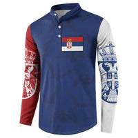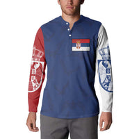 Serbia Flag Button Sweatshirt with Double-Headed Eagle and National Coat of Arms Design