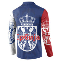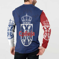 Serbia Flag Button Sweatshirt with Double-Headed Eagle and National Coat of Arms Design TS04