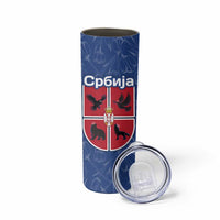 Serbia Skinny Tumbler with Royal Animal Crest and Tulip Floral Blue Background