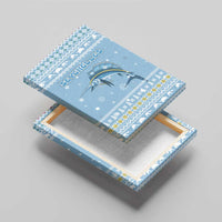 Seychelles Christmas Canvas Wall Art with Ocean Blue Pattern, Marlin Fish Artwork, and Surfing Santa Motif