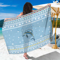 Seychelles Christmas Sarong with Ocean Blue Pattern, Marlin Fish Artwork, and Surfing Santa Motif