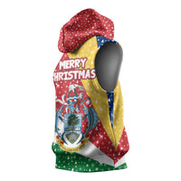 Seychelles Christmas Sleeveless Hoodie with Flag Colors Pattern, Tropical Bird Motif, and National Coat of Arms