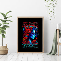Skull Rose Canvas Wall Art I Love My Curve My Tattoo My Imperfection DT01