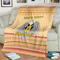 South Sudan Christmas Blanket with Beige Tribal Pattern, National Emblem, and Green Star Motif