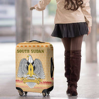 South Sudan Christmas Luggage Cover with Beige Tribal Pattern, National Emblem, and Green Star Motif