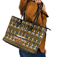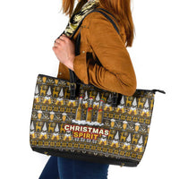 Spirit Beer Christmas Leather Tote Bag Xmas Holiday Patterns
