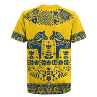 Sweden Dalecarlian Horse Rugby Jersey Floral Folk Pattern Yellow Version LT18