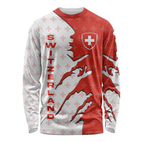 Switzerland Map Scratch Claw Swiss Flag Long Sleeve Shirt with Vertical Text