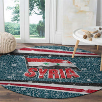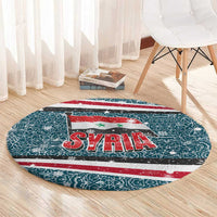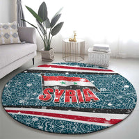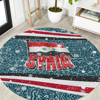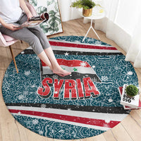 Syria Christmas Round Carpet with National Flag Motif, Coat of Arms Eagle, and Festive Snowflake Pattern