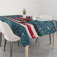 Syria Christmas Tablecloth with National Flag Motif, Coat of Arms Eagle, and Festive Snowflake Pattern TS04