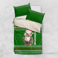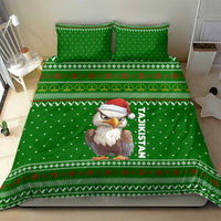 Tajikistan Christmas Bedding Set with Santa Hat Eagle Green Snowflake Pattern and Holiday Design TS04