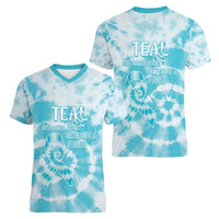 Teal Ribbon Cervical Cancer Awareness Women V-Neck T-Shirt Not Going Down Without A Fight Tie Dye LT14