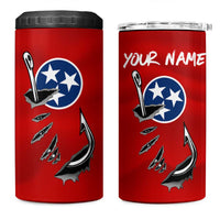 Tennessee Flag Fishing 4 in 1 Can Cooler Tumbler with Ripped Hook Graphic and Triple Star Symbol in Red and Blue