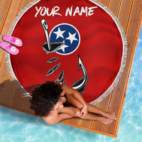 Tennessee Flag Fishing Beach Blanket with Ripped Hook Graphic and Triple Star Symbol in Red and Blue