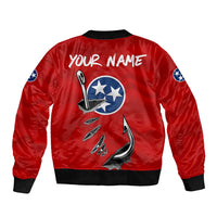 Tennessee Flag Fishing Bomber Jacket with Ripped Hook Graphic and Triple Star Symbol in Red and Blue
