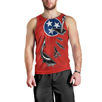 Tennessee Flag Fishing Men Tank Top with Ripped Hook Graphic and Triple Star Symbol in Red and Blue TS04