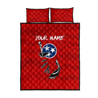 Tennessee Flag Fishing Quilt Bed Set with Ripped Hook Graphic and Triple Star Symbol in Red and Blue TS04