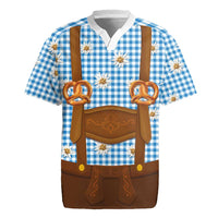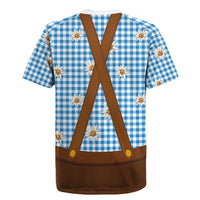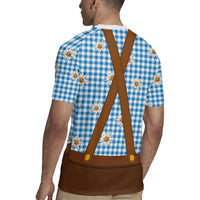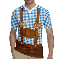 Traditional German Costume - Lederhosen and Soft Pretzel Rugby Jersey Red Plaid Pattern with Edelweiss Flowers
